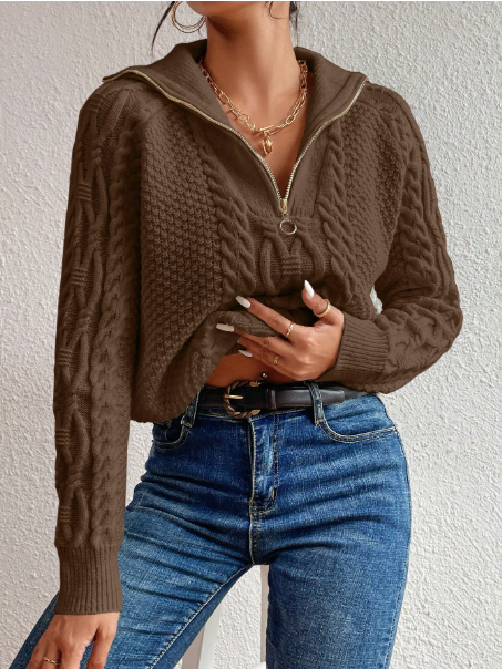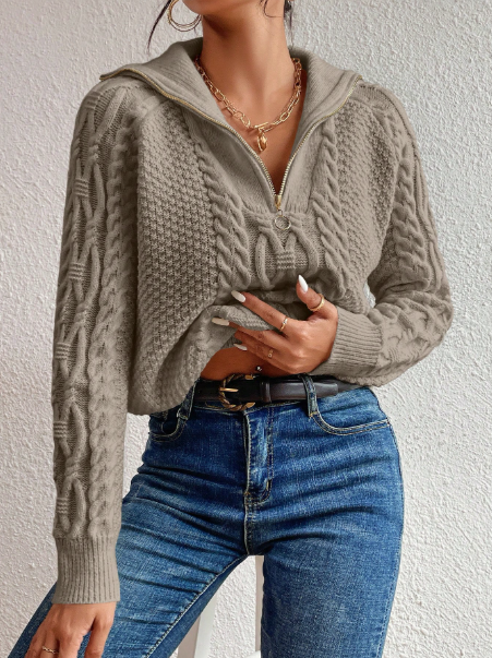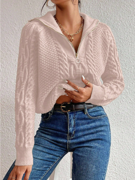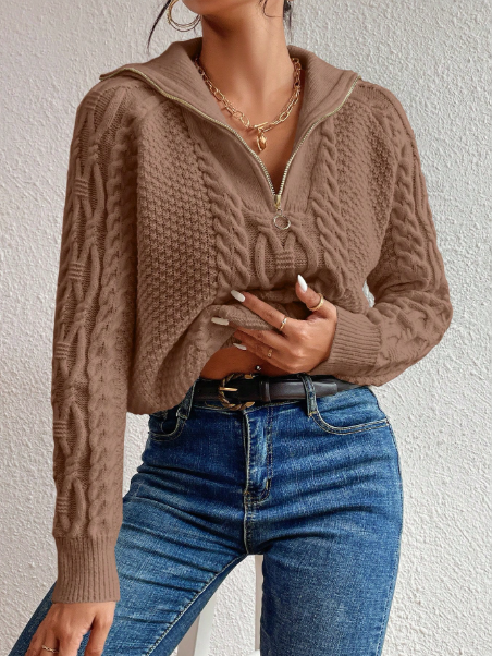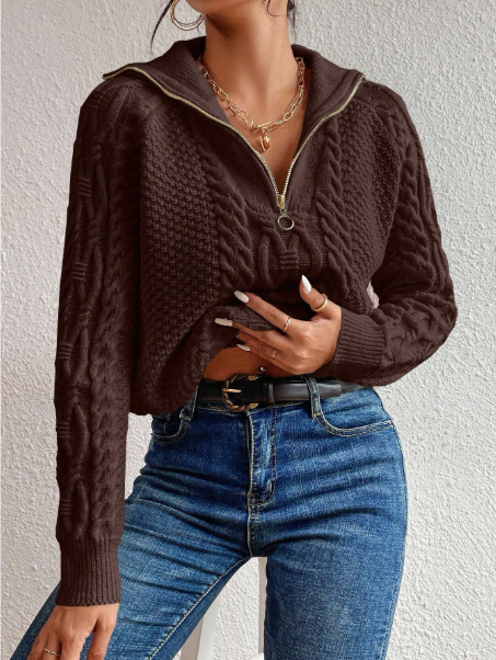 Product Note: This cable knit half-zip raglan sleeve sweater is a cozy and stylish choice for fall and winter. Featuring soft knit fabric, long sleeves, and a convenient half-zip design, it offers warmth and effortless layering. Perfect for casual outings or relaxed indoor wear, it combines comfort with timeless seasonal style.