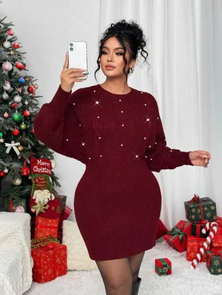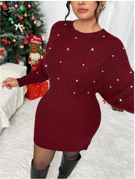 Product Note: Celebrate the season in style with this Christmas Womenโs Elegant Loose Beaded Long Sleeve Plus Size Sweater Dress. Designed for comfort and festive charm, it features delicate bead detailing and a relaxed fit. Perfect for dates, nights out, or holiday gatherings, this autumn/winter dress combines warmth, elegance, and effortless style for plus-size wardrobes.