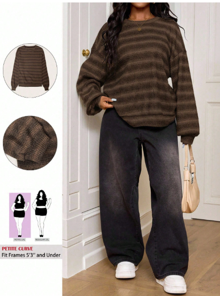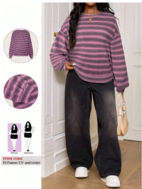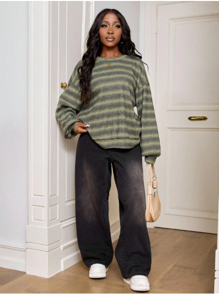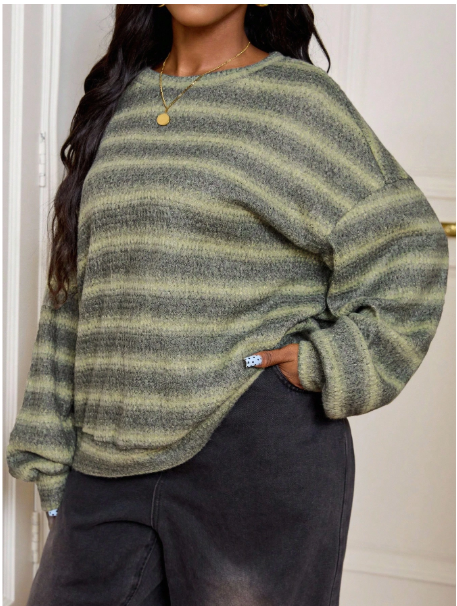 Product Note: Make a bold style statement with this CURVE Plus Size Crew Neck Striped Jumper. Inspired by Y2K and 90’s fashion, it features vibrant green stripes and a cozy knit perfect for fall and winter. Ideal for airport outfits, casual days, or petite curve styling, this versatile plus-size sweater delivers comfort, warmth, and effortlessly trendy vibes.