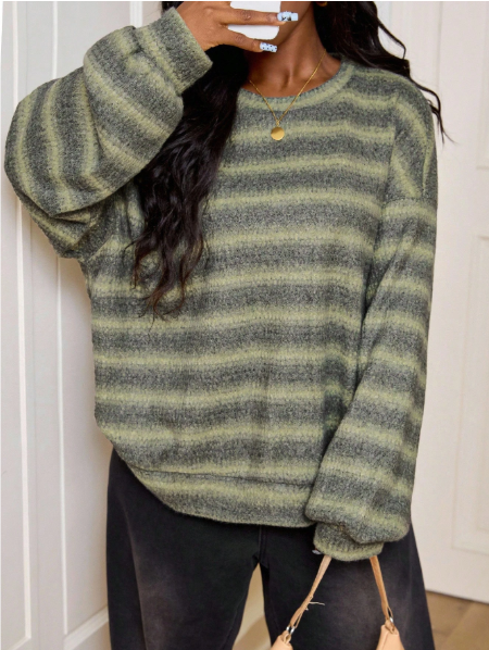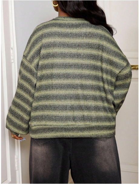 CURVE Plus Size Plus Size Crew Neck Striped Jumper Casual Y2k 90's Stripe Plus Size Airport Outfits Petite Curve Sweater Striped Sweater Green Striped Sweater In Fall/Winter