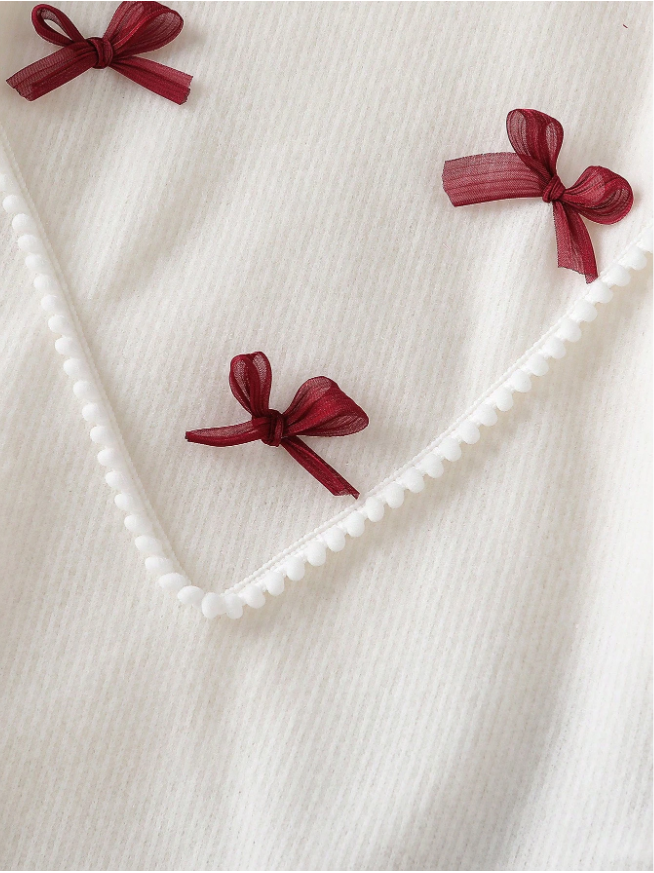 Product Note: This Genkimix Kids 2-Piece Christmas Autumn/Winter Outfit is a charming and stylish set designed for tween girls who love cute, chic Korean-inspired fashion. Featuring a sweet round-neck long-sleeve top adorned with an elegant bow decoration, it adds just the right touch of festive charm and girly sophistication.