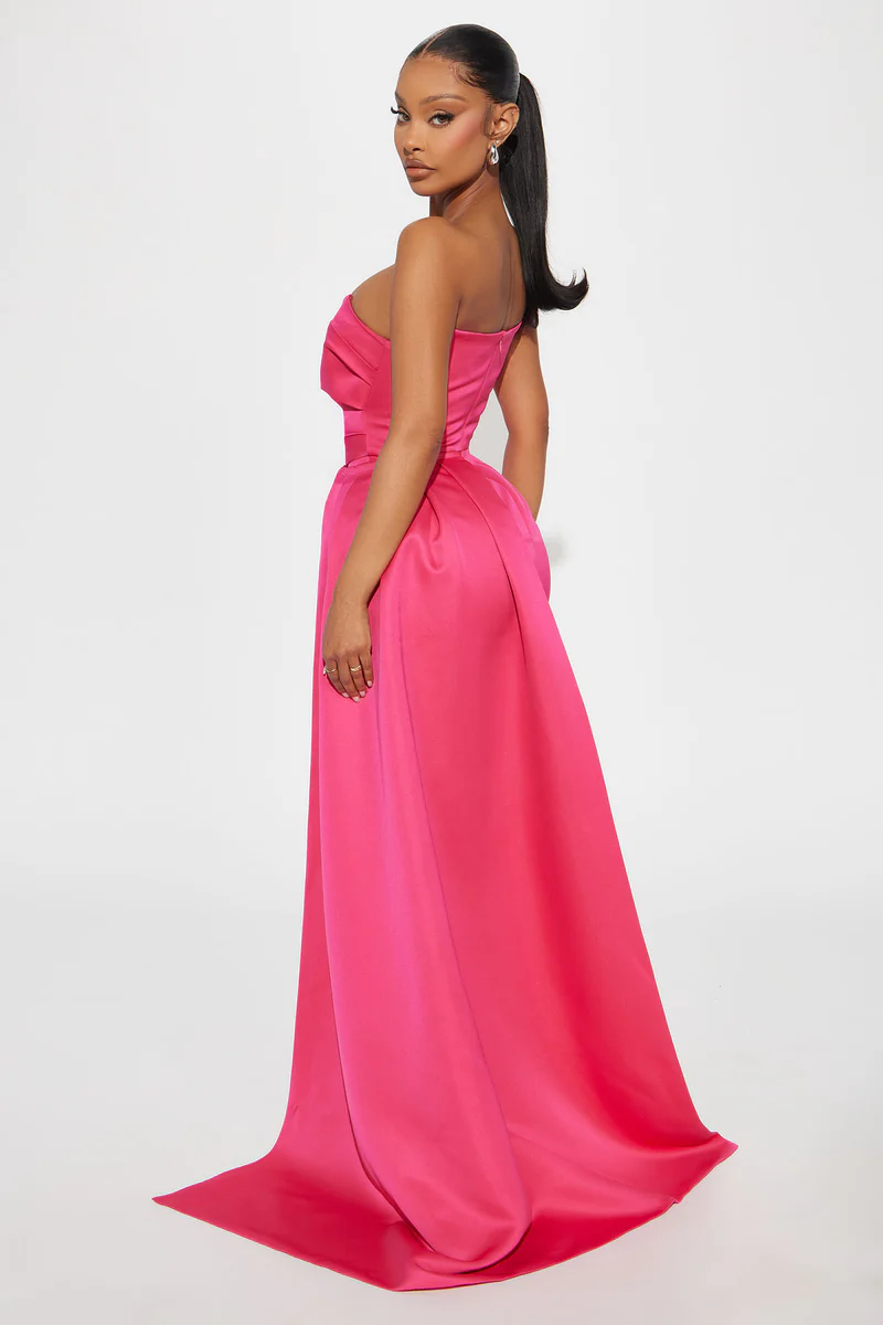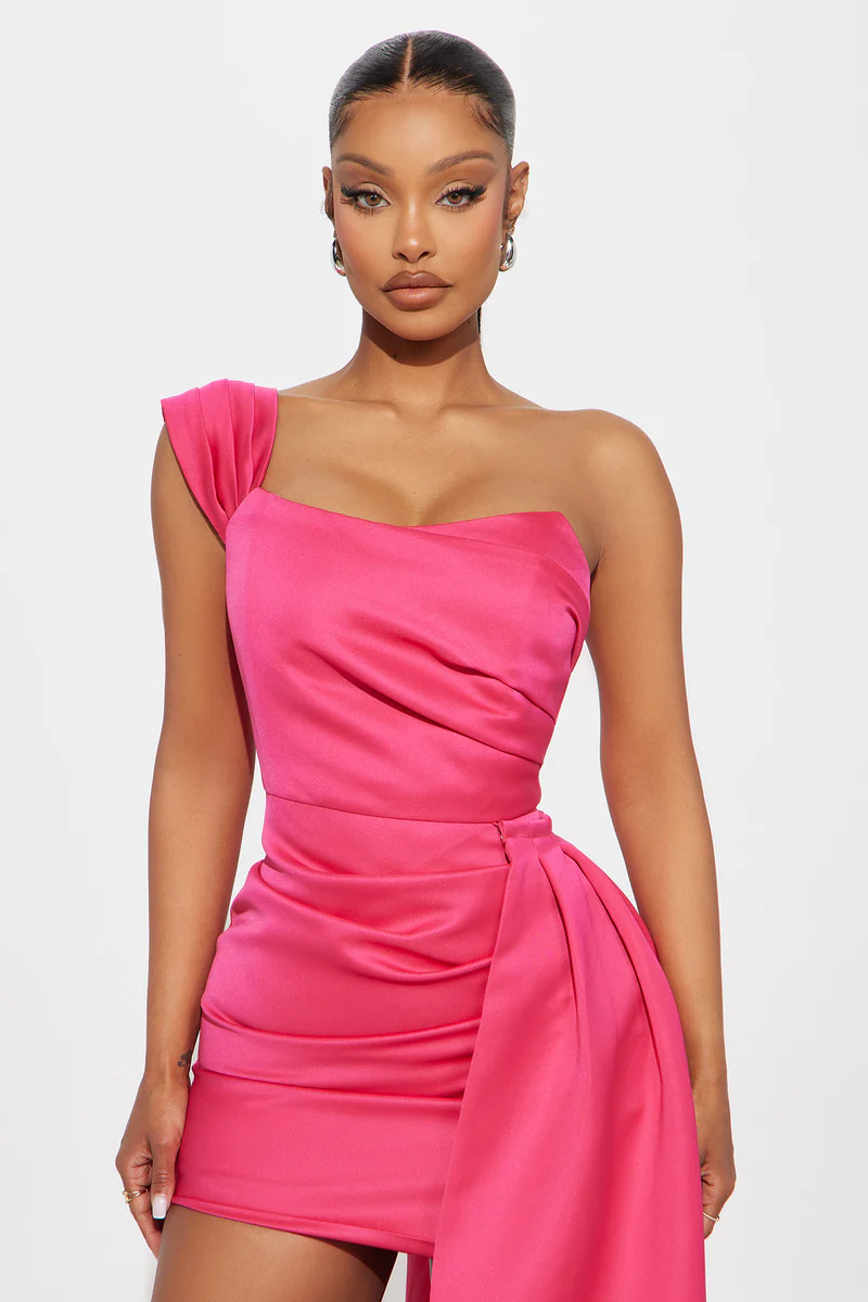 Isabella Removable Train Satin Mini Dress - Hot Pink