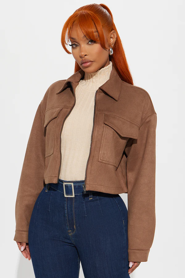 Marissa Faux Suede Jacket - Brown
