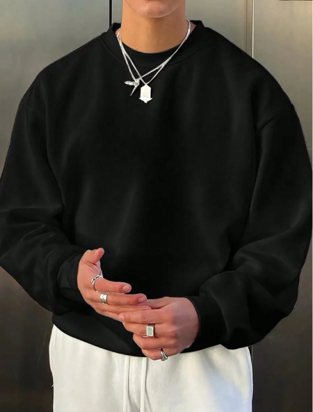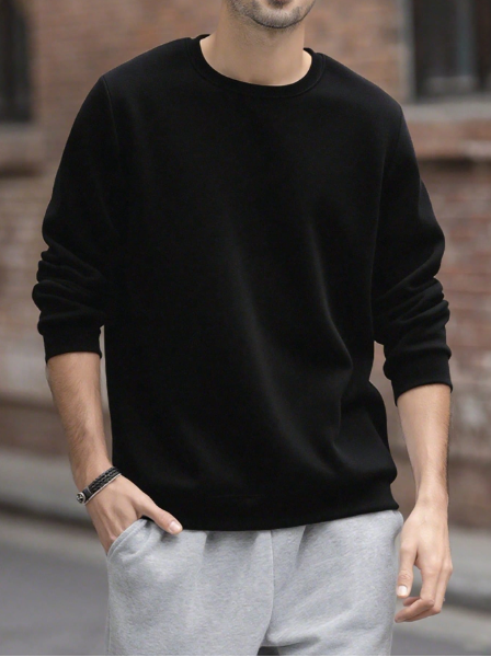 Product Note: Men's All-Match Crew Neck Sweatshirt, Versatile Casual Pullover, Essential For Street Style Layering, Autumn/Winter, Long Sleeve Top