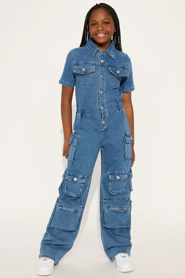 Mini Lily Cargo Jumpsuit - Medium Wash