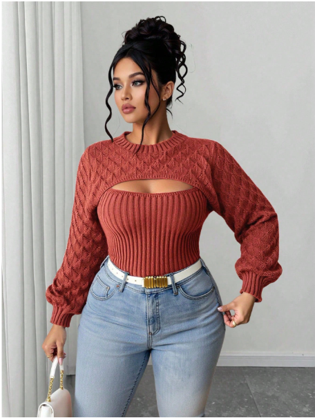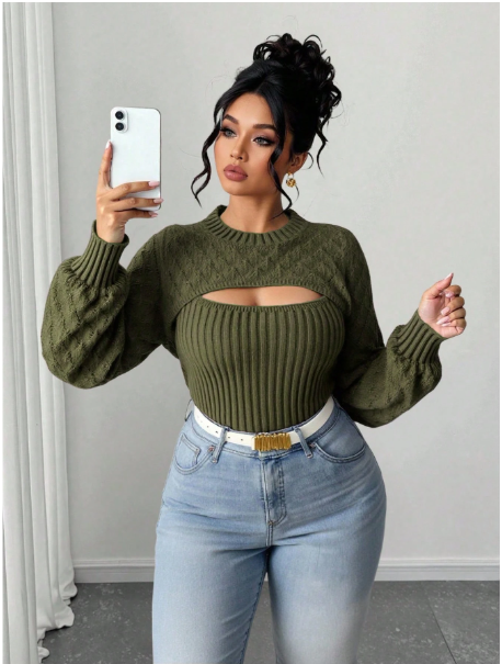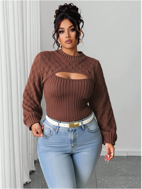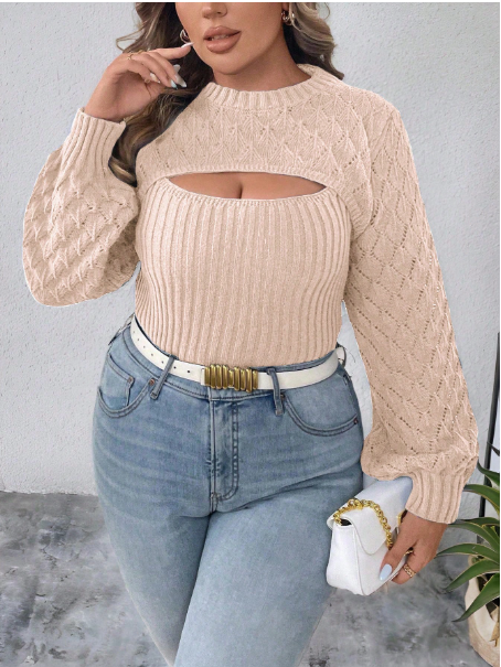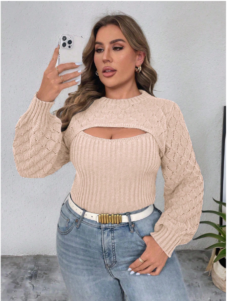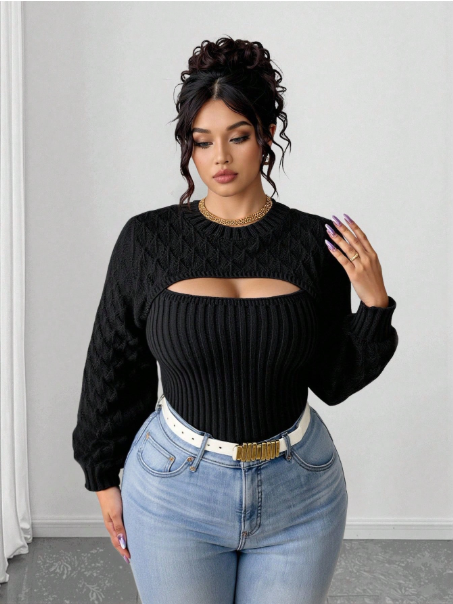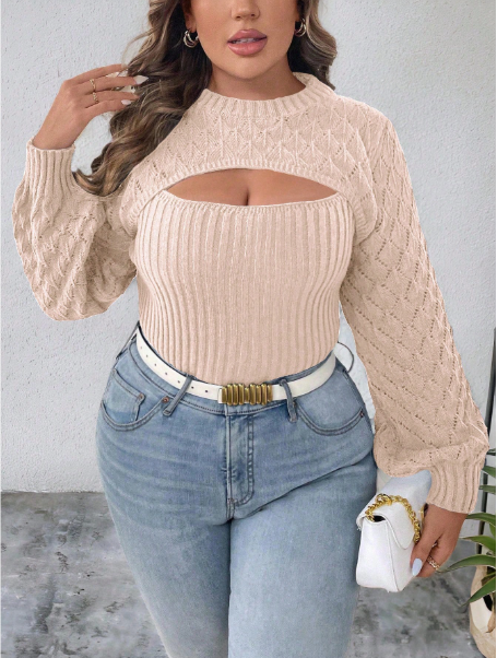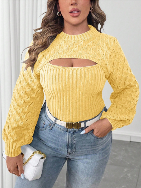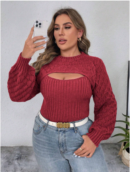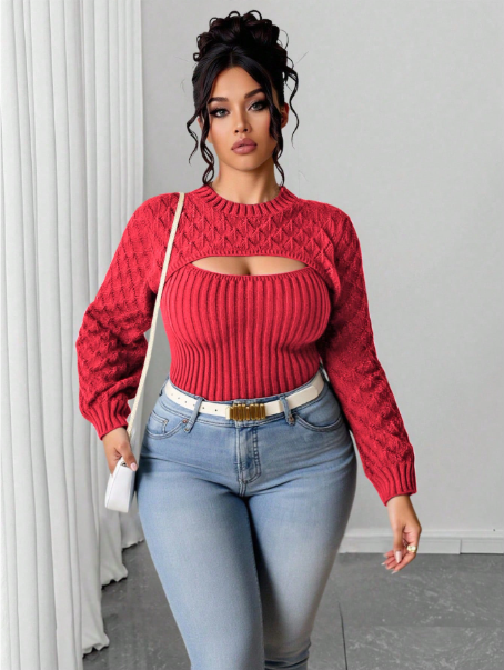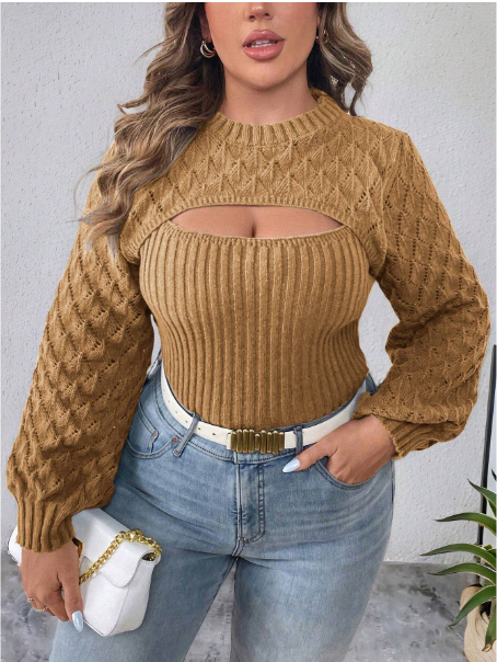 Product Note: This plus-size solid color 2-in-1 hollow-out sweater blends comfort with casual autumn style. Designed with a layered look and breathable cut-out details, it offers effortless versatility for everyday wear. Soft, cozy fabric ensures all-day comfort, while the relaxed fit pairs easily with jeans, leggings, or skirts for a chic seasonal outfit.