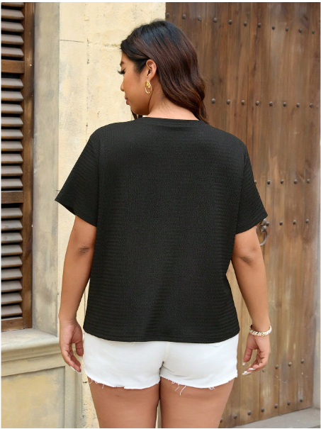Product Note: The Frenchy Plus Size Summer T-Shirt combines casual comfort with chic style, featuring a playful bow detail and a trendy split hem. Made from soft, breathable fabric