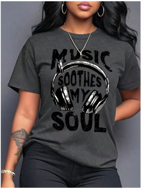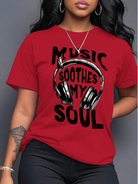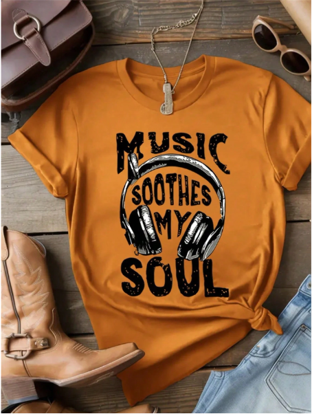 Product Note: Stay inspired this season with the Summer Music Soothes My Soul slogan T-shirt. Designed with a classic round neck and short sleeves, this soft and breathable tee keeps you comfortable all day. The uplifting graphic adds a fun, expressive touch, making it perfect for music lovers and casual summer outfits. Pair with jeans, shorts, or skirts for effortless style.