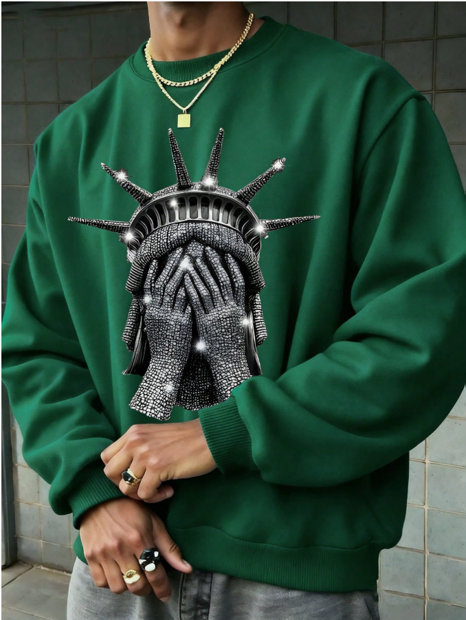 Teen Boy Clothes Street Fashion Statue Pattern Print Oversized Loose Long-Sleeved Round-Neck Sweatshirt