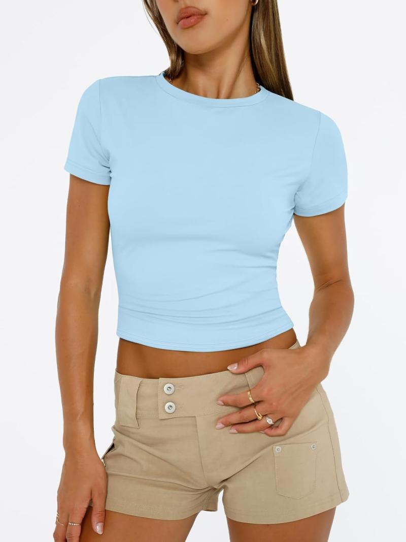 Trendy Queen Womens Basic T Shirts Summer Tops Short Sleeve Crop Tops Slim Fit Gym Workout Y2k Clothes