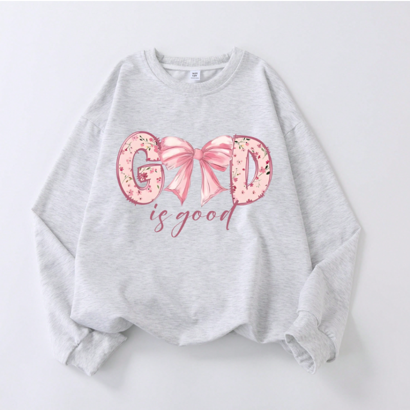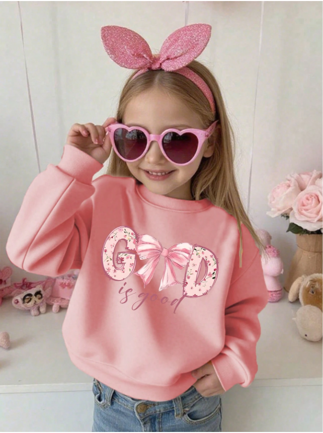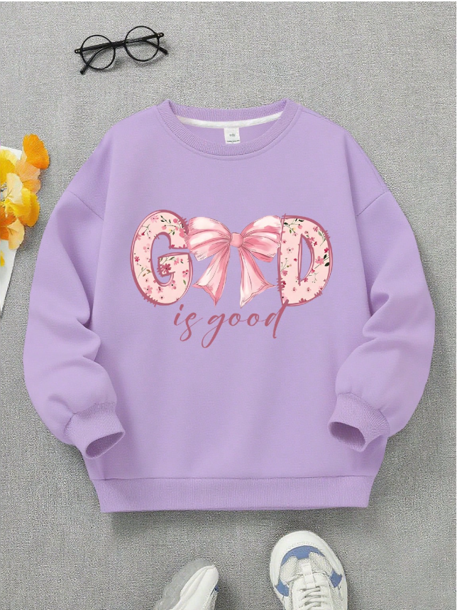 Tween Girl Long Sleeved Round Neck Sweatshirt With "GOD Is Good" Print Pattern, Providing A Comfortable, Fashionable, And Casual New Autumn And Winter Season,For School, Shopping, Streetwear And Vacation Wear