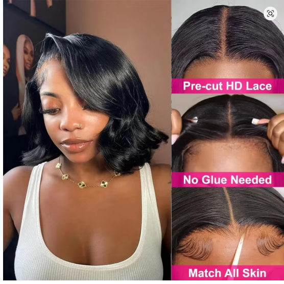 Wear And Go Glueless Bob Wig Human Hair Short Body Wave Lace Front Wigs Pre Cut Brazilian Hair 4X4 Hd Lace Closure Wig For Women