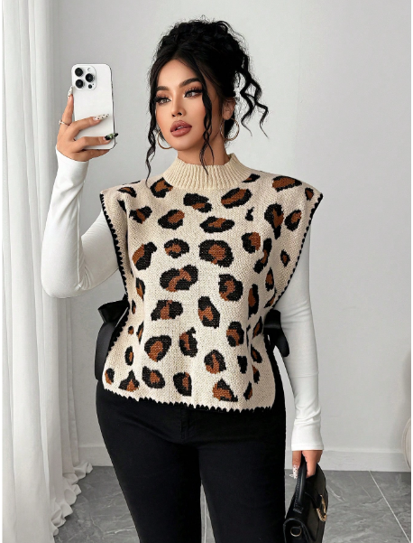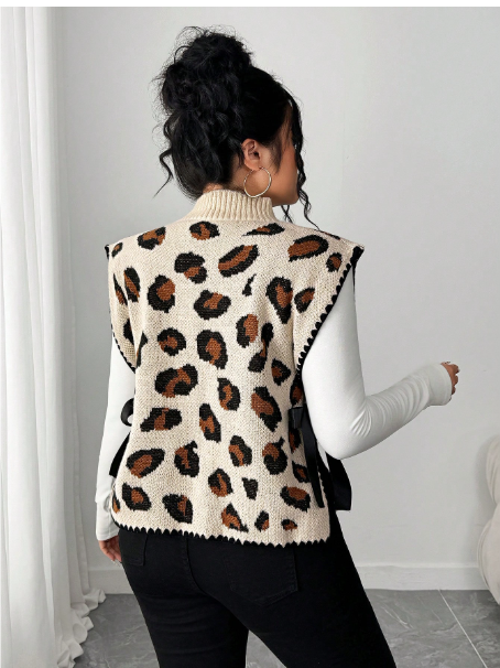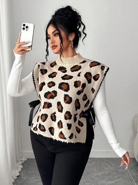 Product Note: Add a chic touch to your seasonal wardrobe with this elegant leopard print sleeveless vest sweater. Designed in a loose knit with a stylish tie-up detail, it offers both comfort and sophistication. Perfect for layering over shirts, tees, or dresses, this plus size vest is ideal for autumn and winter. A fashionable yet cozy piece for office wear, casual outings, or holiday looks.