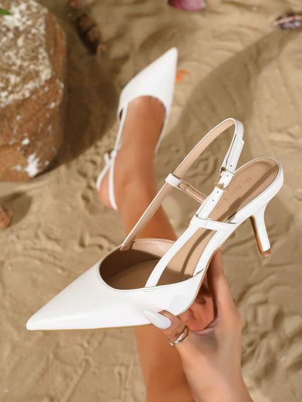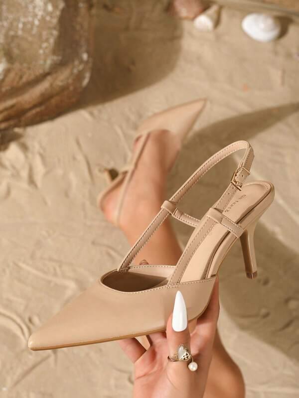 Women's Fashion Elegant Pointed Toe Buckle Strap High Heels Pumps, Versatile Work Appropriate Dress Shoes