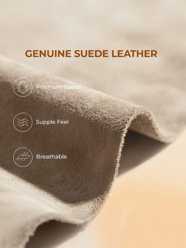 Product Note: Indulge in luxury with these genuine suede slippers. Featuring a warm fluffy lining and supportive memory foam insole, they offer cute, all-day comfort for indoor and outdoor winter wear.