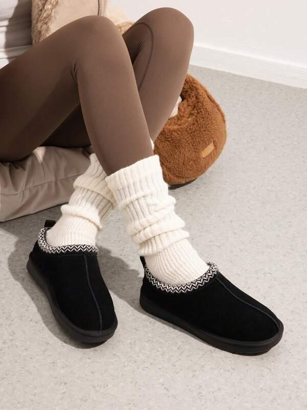 Women's Fashion Slippers - Genuine Suede, Indoor Outdoor Fluffy Shoes For Winter Comfort, Cute And Warm With Memory Foam
