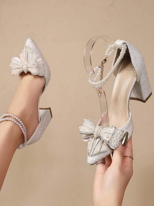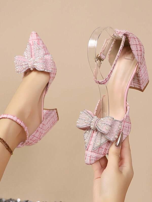 Women's New Pointed Toe High Heel Sandals With Rhinestones, Bowknot Transparent Fairy Strap