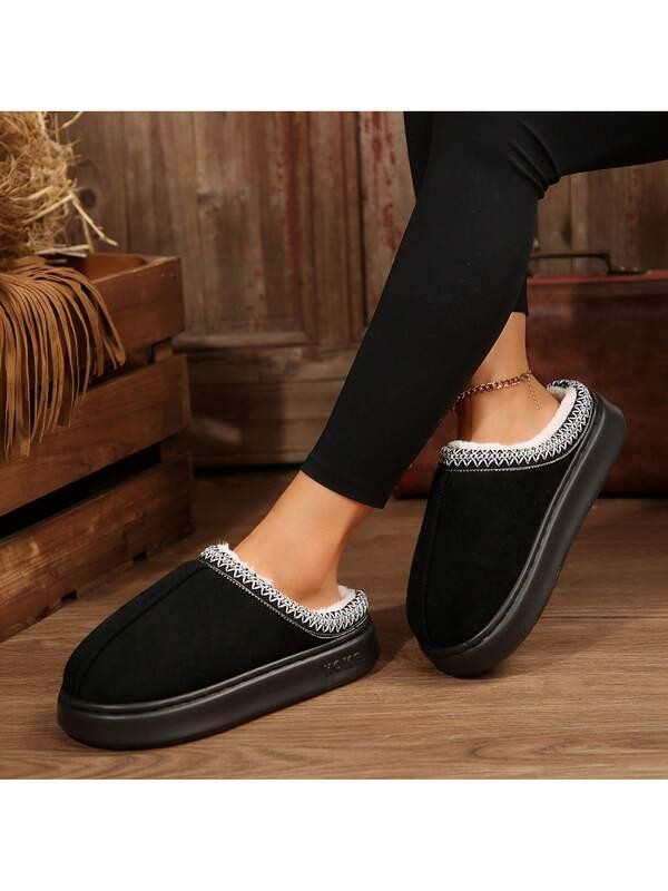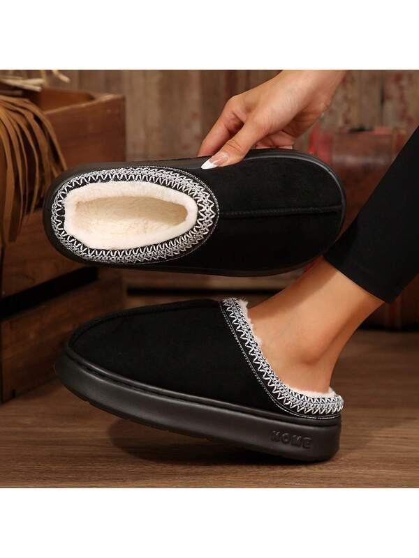 Women's Plush-Lined Slippers - Memory Foam & Thick Sole For Fall And Winter Comfortable Women Shoes