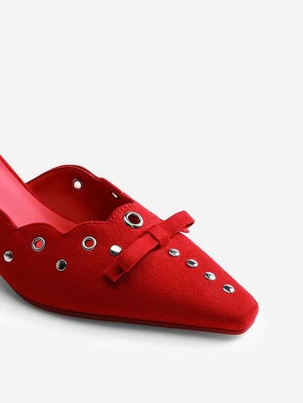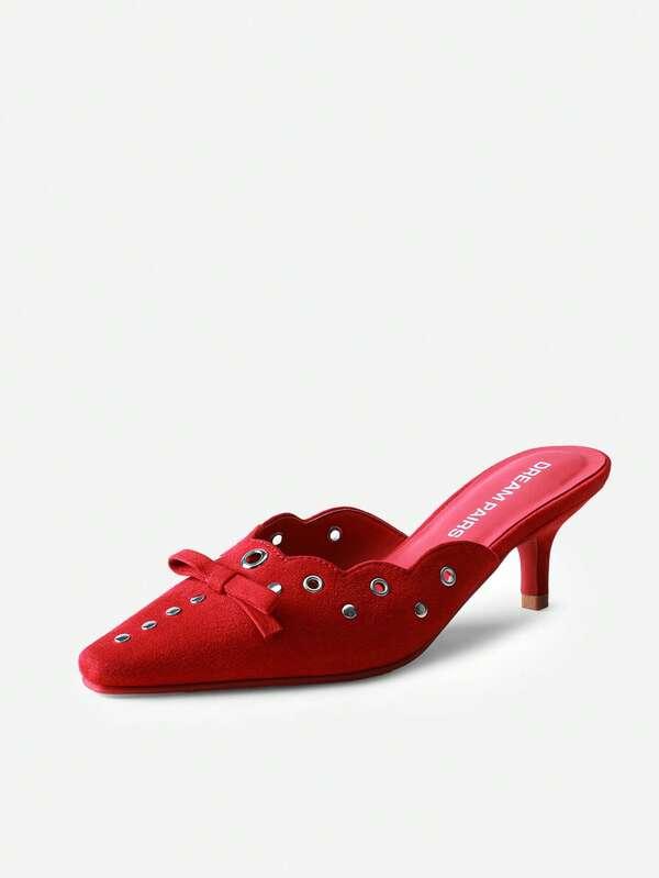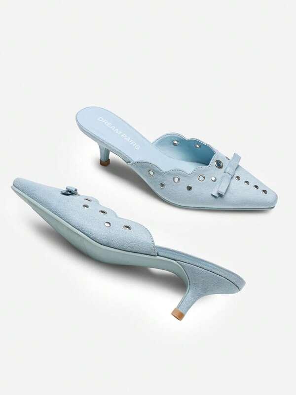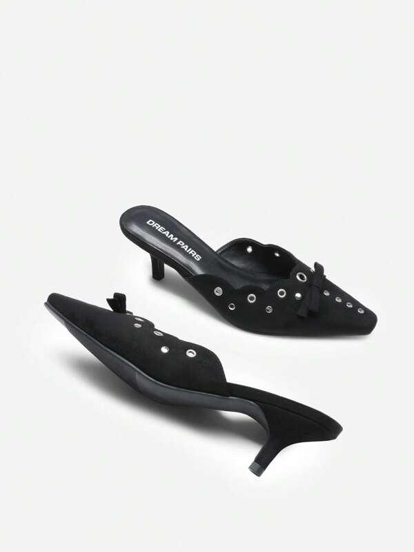 Women's Pointed Toe Kitten Heel Mules Slip-On Bowknot Fashionable Elegant Pumps