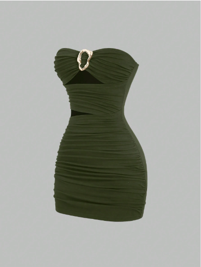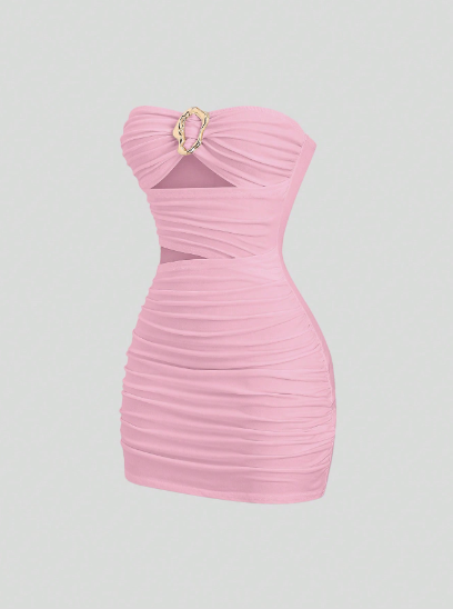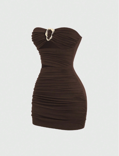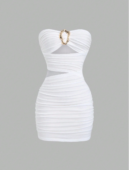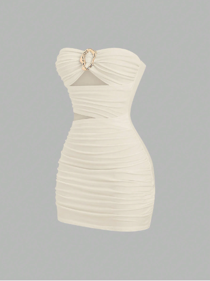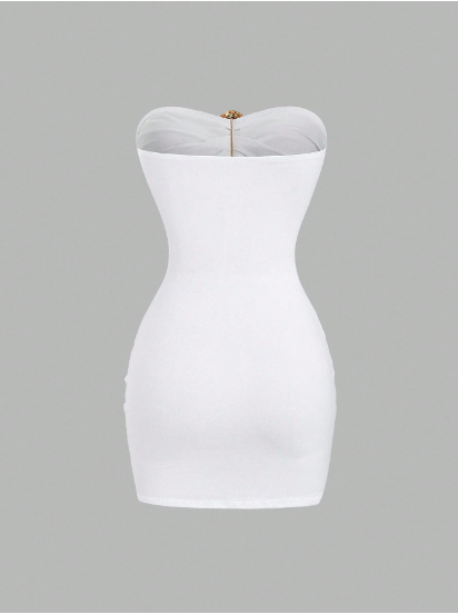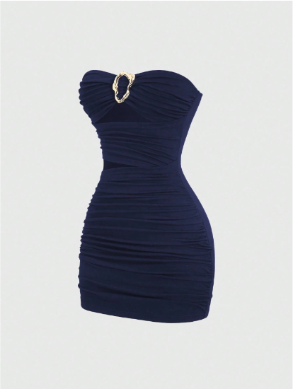 Women's Sexy Fitted Strapless Metal Buckle Mini Dress