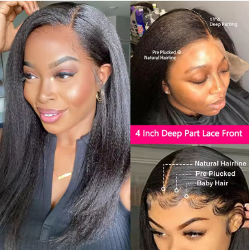 13x4 Transparent Kinky Straight Lace Front Wigs Yaki Straight Human Hair Wigs Bleached Frontal Wigs For Black Women Pre Plucked