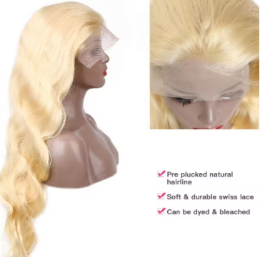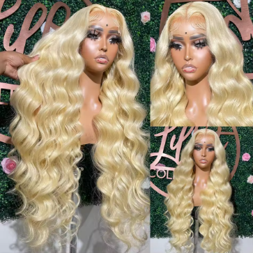 Product Note: This 360 Lace Frontal 613 Blonde Wig features soft Brazilian human hair with a flowing body wave texture. Its 360 lace, along with 13×4 and 13×6 options, ensures a natural hairline and flexible styling.