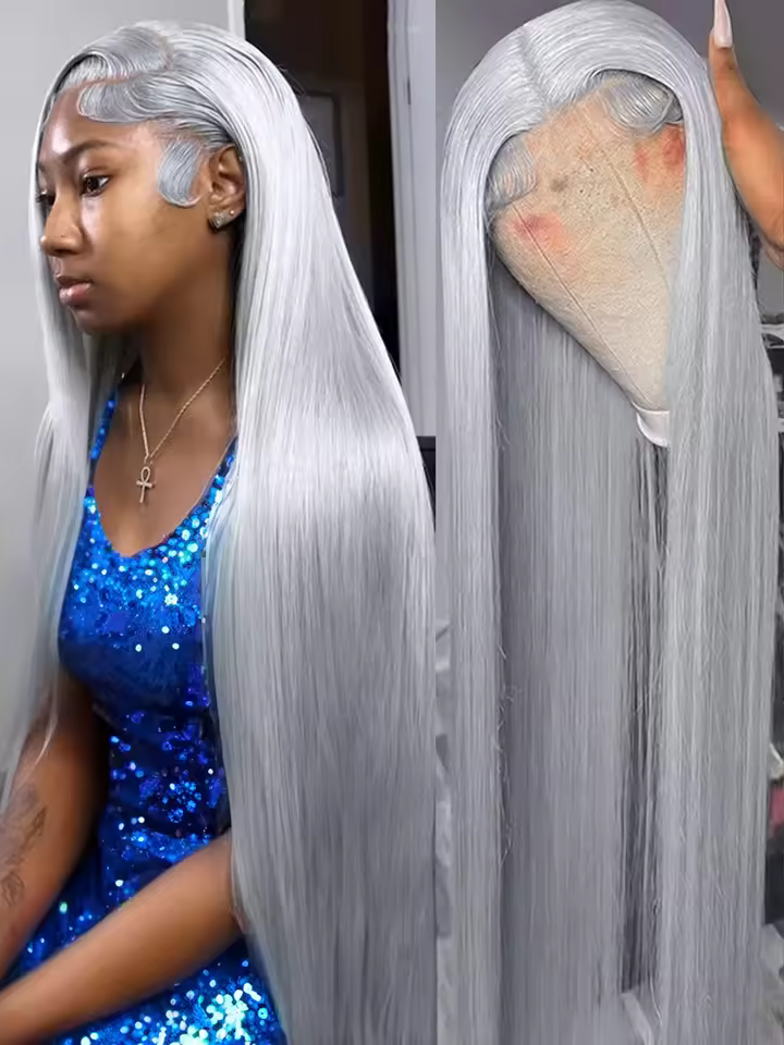 Product Note: The 40 Inch Silver Grey Straight Lace Front Wig is made from 100% Brazilian human hair with a sleek, silky texture. Featuring 13x4 and 13x6 HD transparent lace frontal options, it comes pre-plucked for a natural hairline and flawless finish. With an impressive 250% density, this wig offers extra volume and fullness, while the striking silver grey color creates a bold, modern look. Perfect for women who want long, luxurious hair with a unique, eye-catching style.