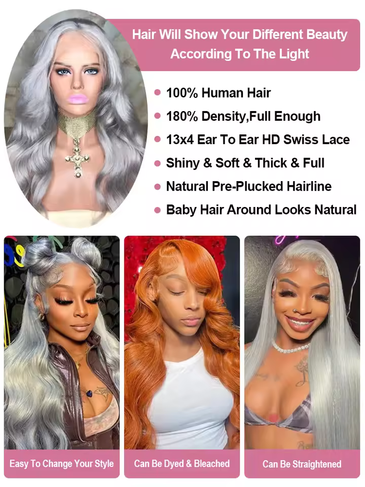The HD silver grey color provides a realistic tone, enhancing the wig's natural appearance and versatility.