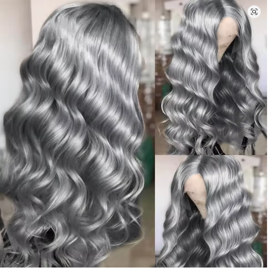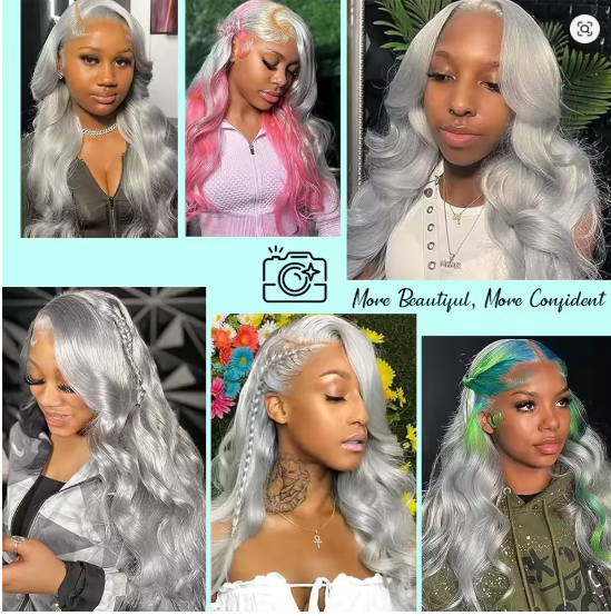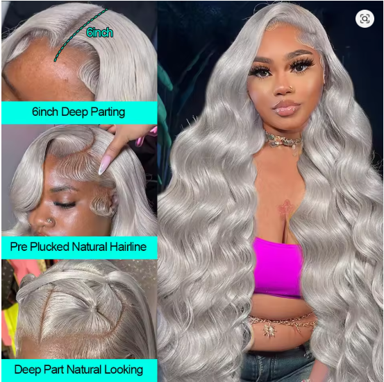 Step into a world of fantasy and fashion with our Cosplay Body Wave Silver Grey Lace Front Wig! Perfect for conventions, photoshoots, or making a bold everyday statement, this wig combines ethereal color with premium quality. Crafted from Remy Brazilian Human Hair in a striking 613 platinum blonde base with silver grey tones, this piece features a luxurious body wave texture and undetectable HD lace (13x4 or 13x6) for a seamless, magical transformation.